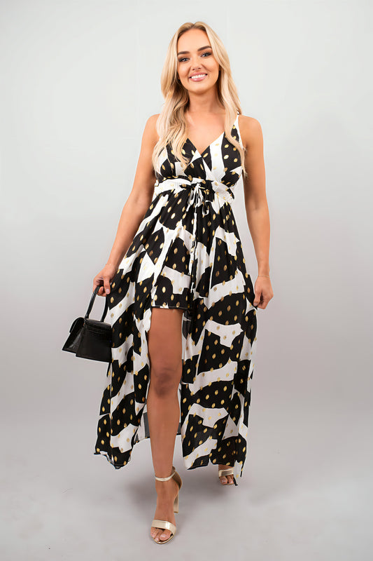 Printed Short Sleeve Button Down V-Neck Maxi Dress