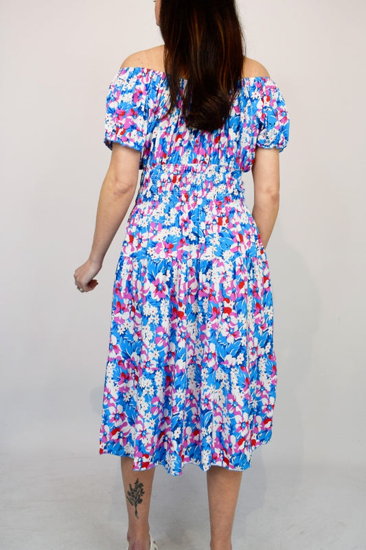 Floral V Neck Short Sleeve Maxi Dress with Tie Waist