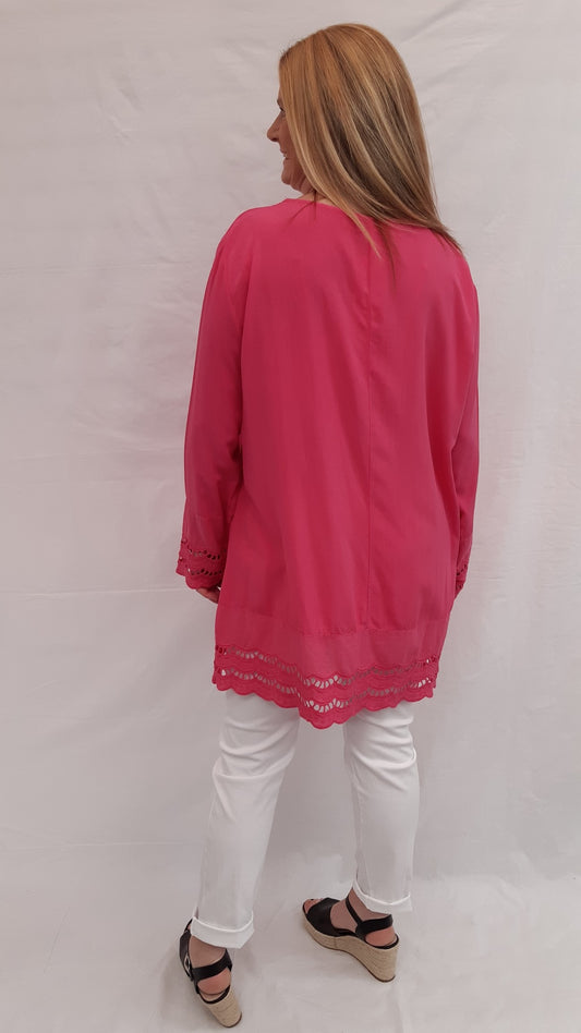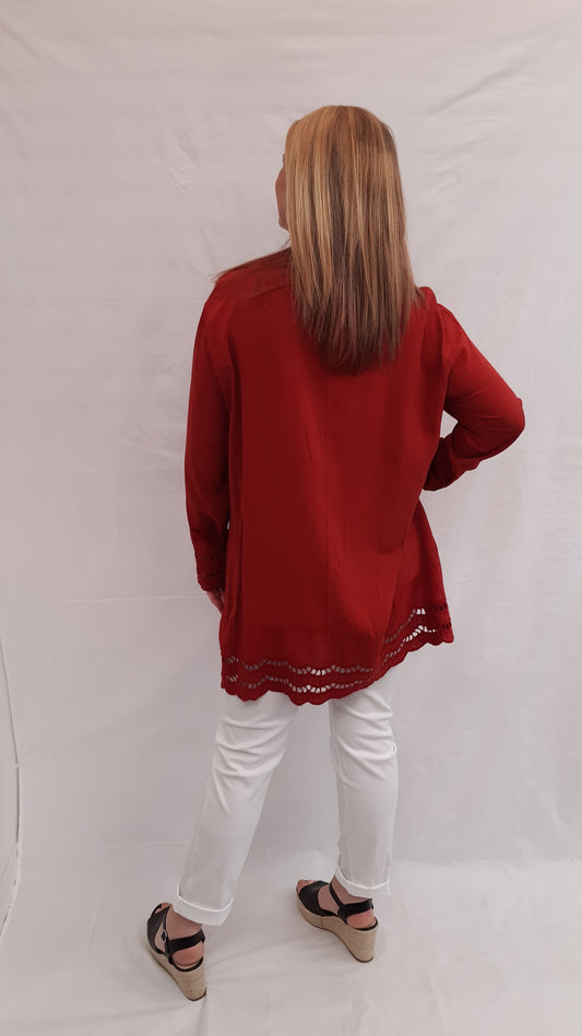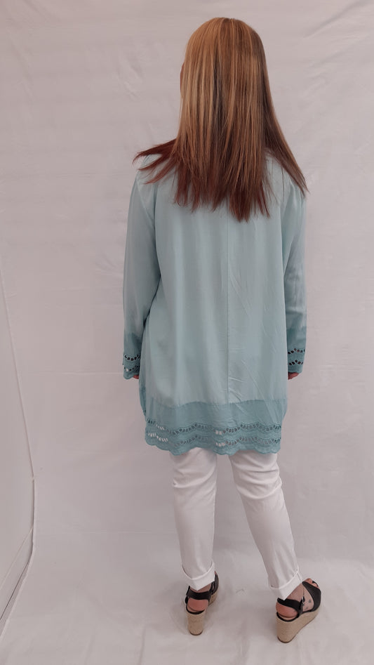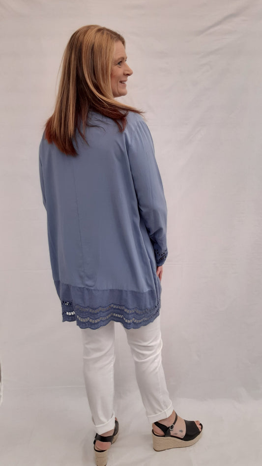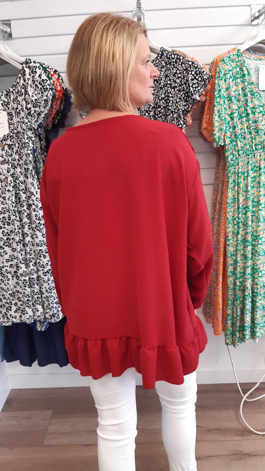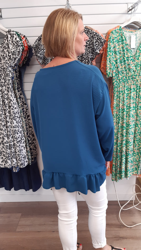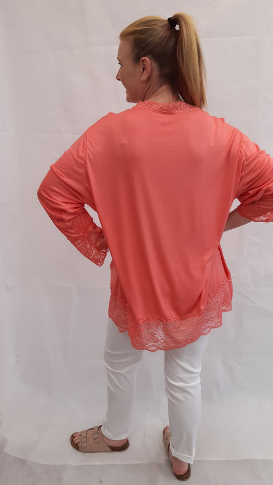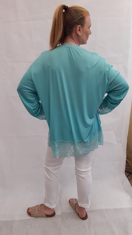 Long Sleeve Lace Hem V Neck Lace Hem Top