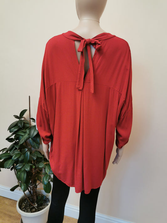 V Neck V Back Tie Red Top