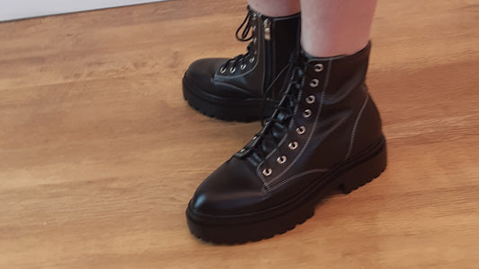 Black Chunky Stitch Fastening: Zip Ankle Boots