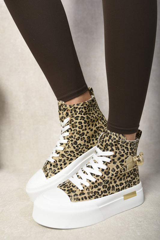 High Top Lace Up Platform Ankle Trainers with Decorative Detail