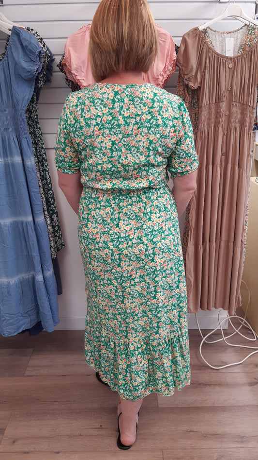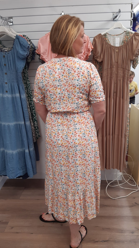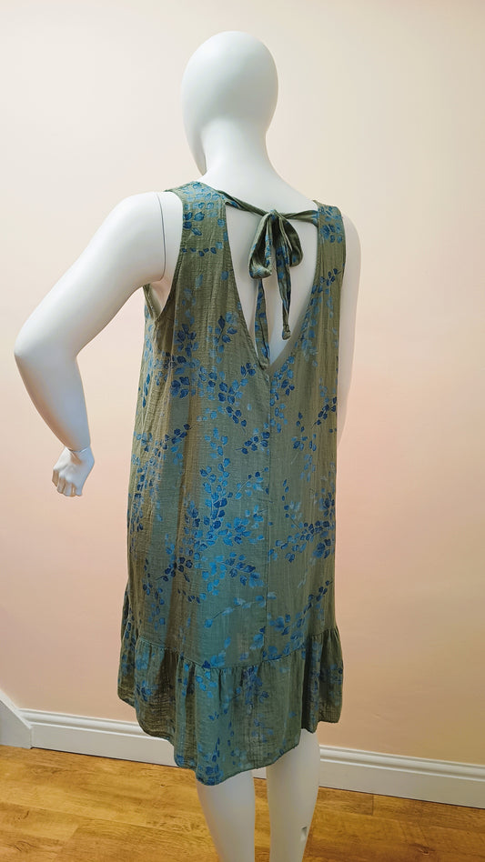 Leaf Branches Print Tie Back Neck Cotton Dress