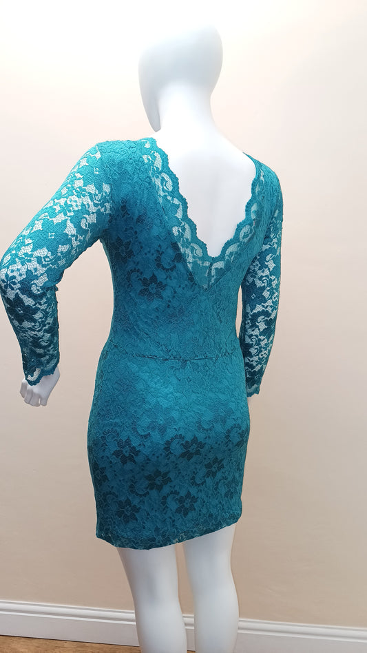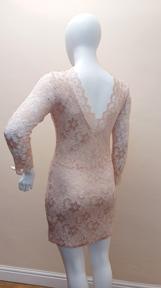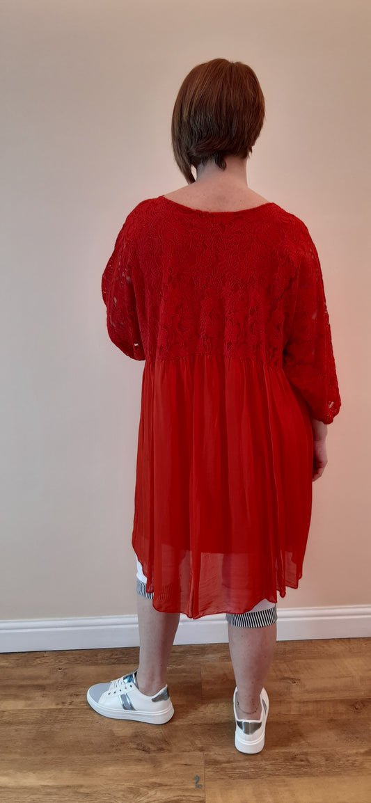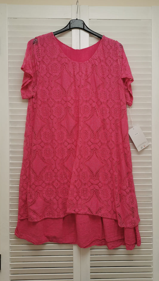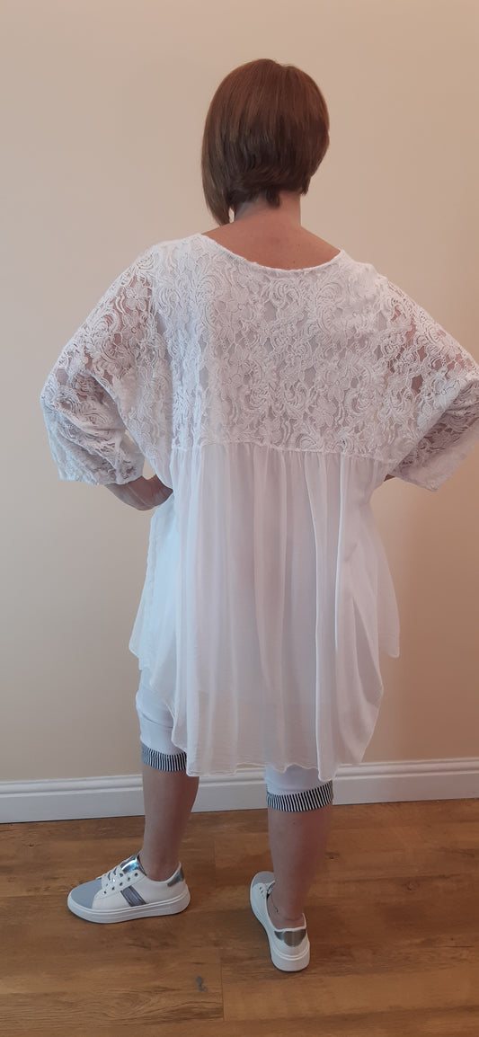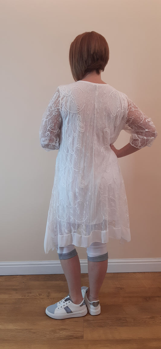 Geometric Pattern Mesh Lace Dip Hem Top /Dress