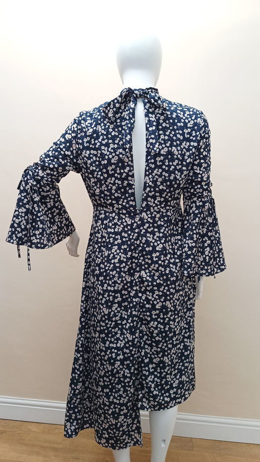 Navy Asymmetrical Bell Sleeve Small Daisy open back style Dress