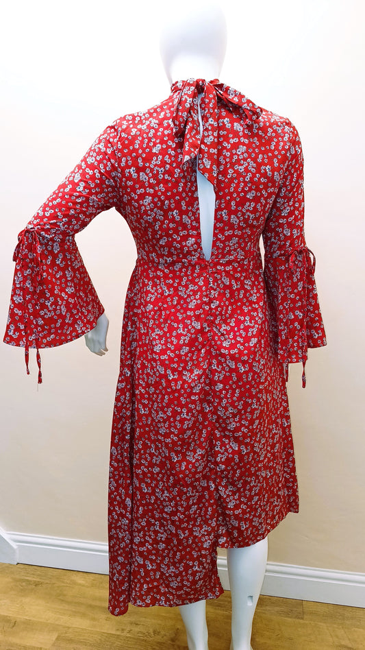 Red Asymmetrical Bell Sleeve Small Daisy open back style Dress