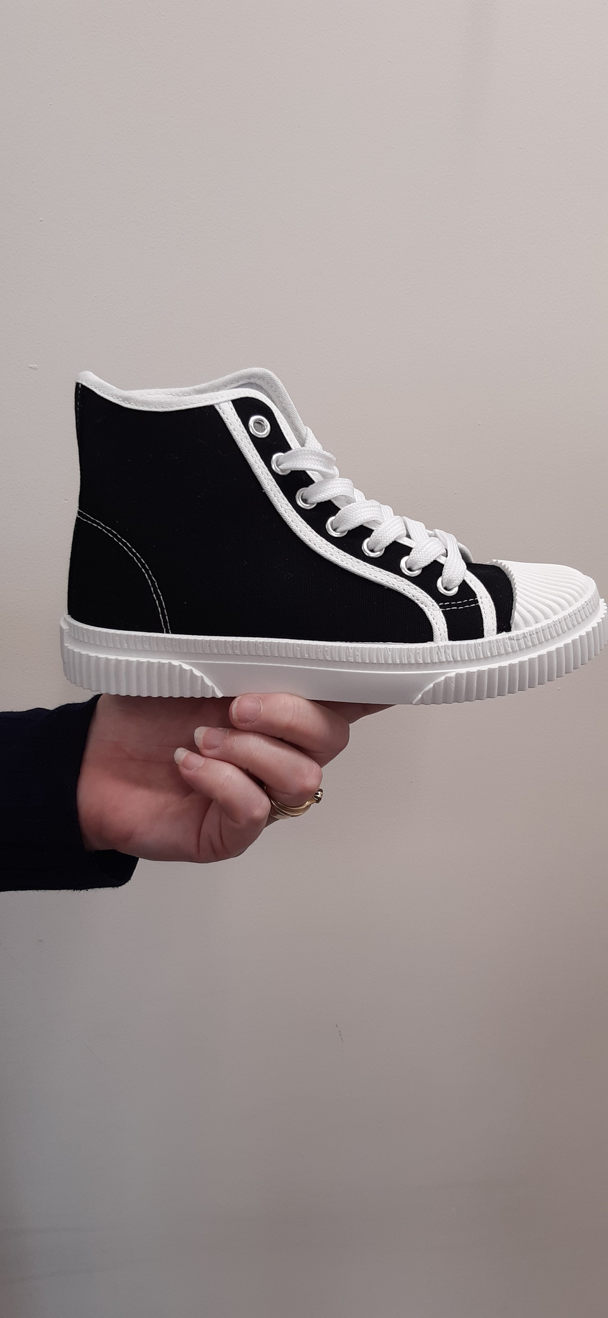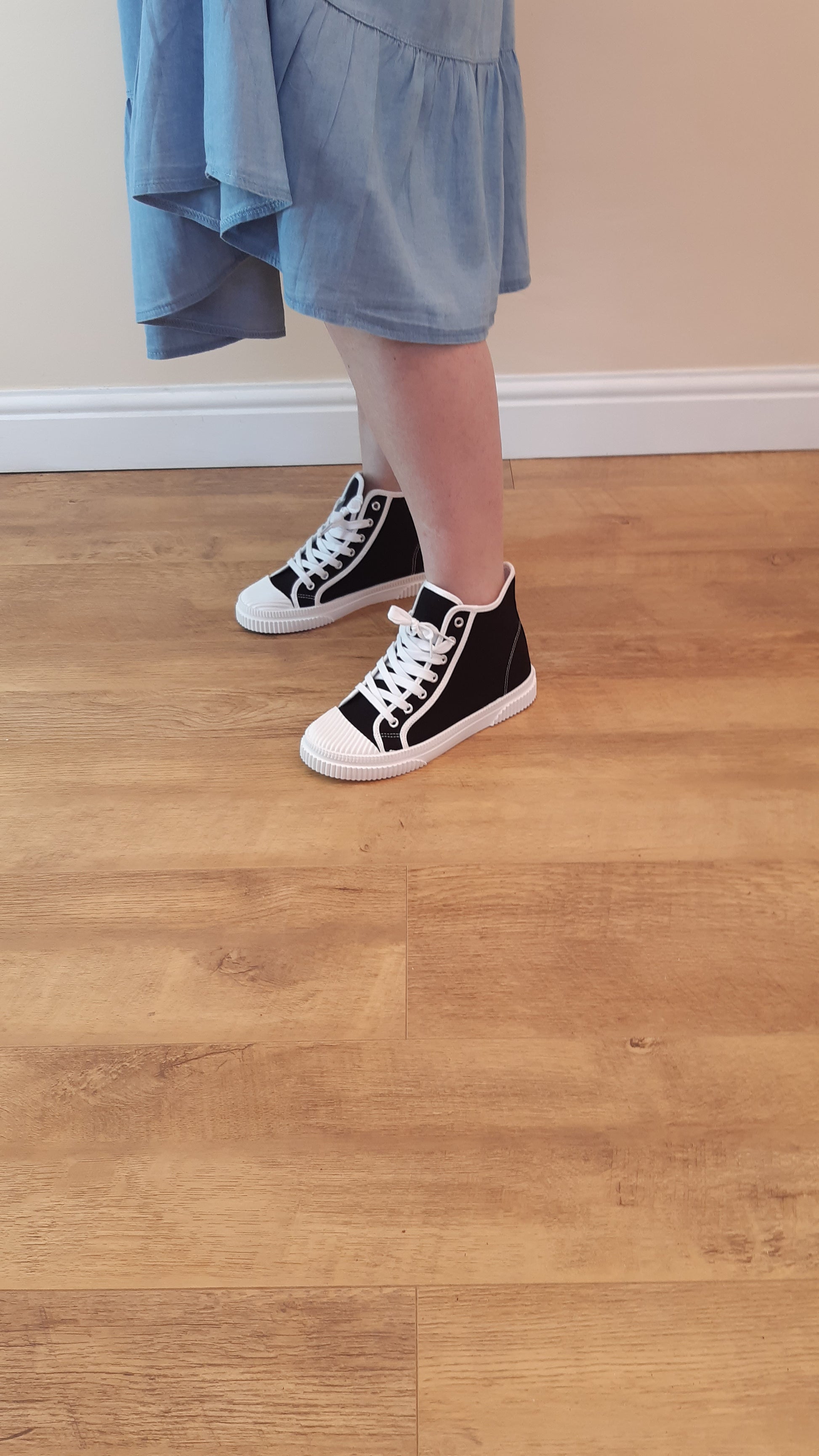 These sleek and stylish Black Lace up Flat High Top Trainers feature a classic design with a lace-up front for adjustable comfort. With a lightweight, yet sturdy construction, these trainers provide optimal foot support and stability.