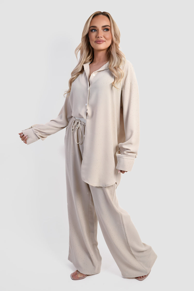 Button Down Embellished Long Sleeve Top