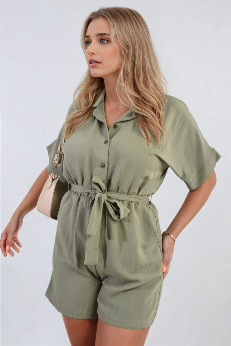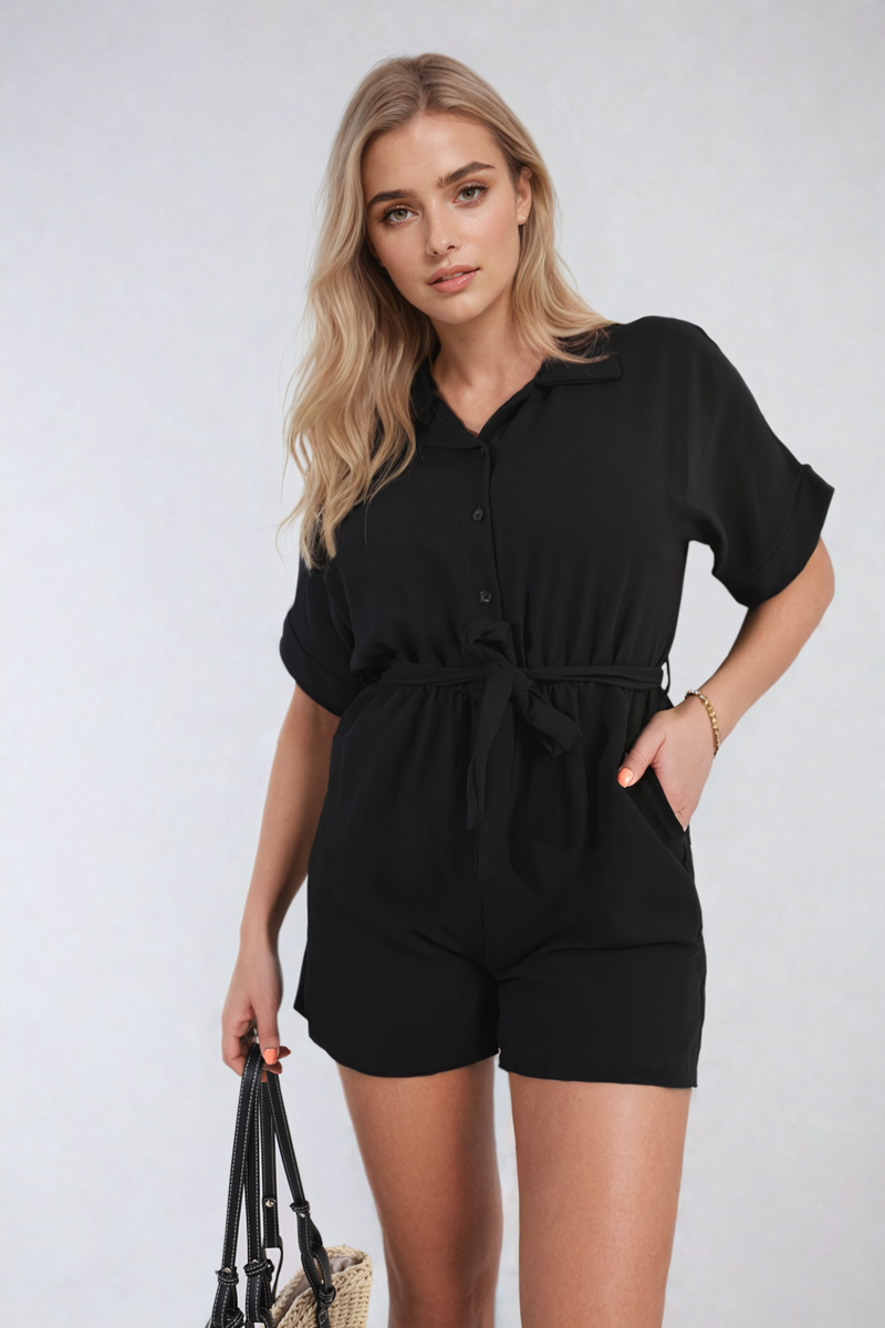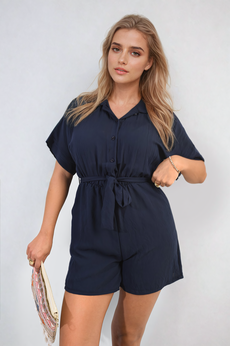 ?️ Elevate your summer style with the Brenda Buttoned Tie Waist Romper and enjoy the perfect blend of fashion and fun for the season ahead!