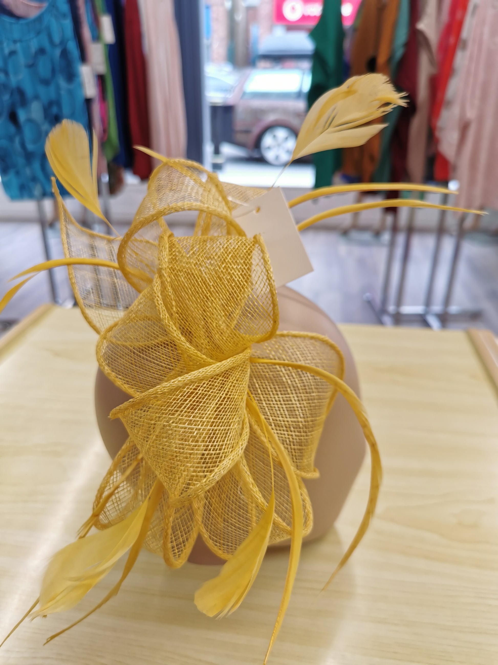fascinator on a satin covered alice band with feathers.