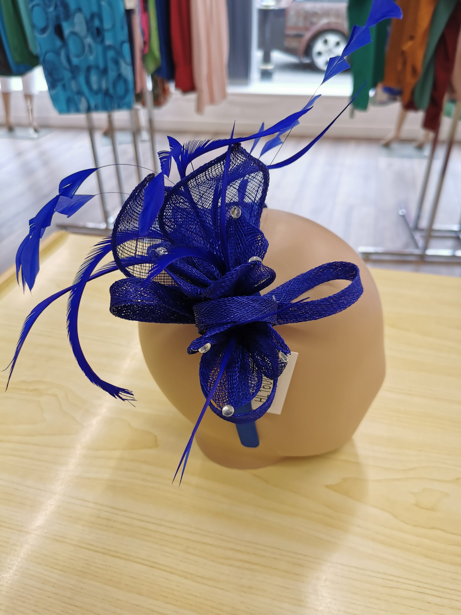 A stylish and modern flower fascinator on a satin Alice band with feathers and clear acrylic stones. This unique headpiece features a timeless design with sharp detailing that will add a touch of elegance to any look.