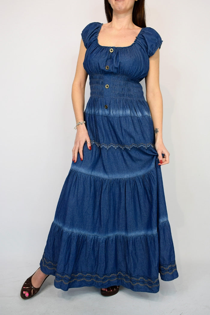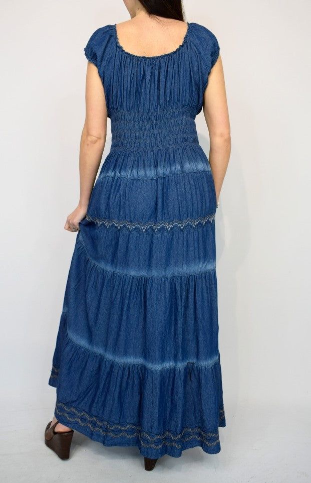 Long Denim Tie Dye stripe Dress - Dark Denim Success