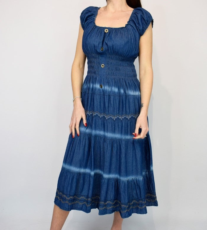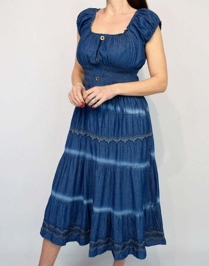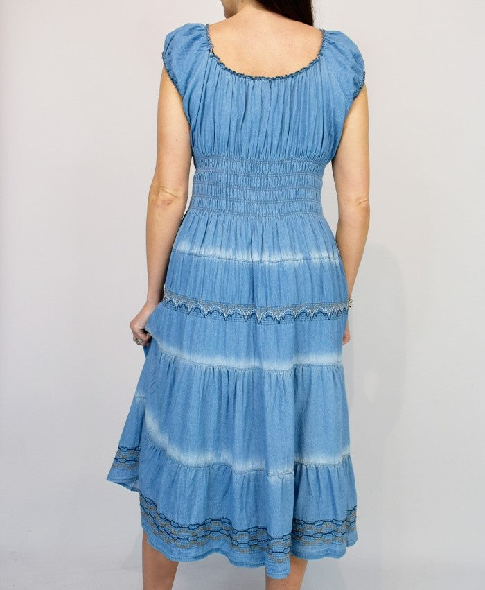 Midi Denim Tie Dye stripe Dress - Light Denim