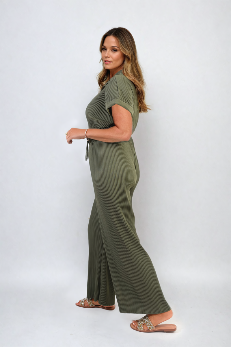 The Marina jumpsuit features short sleeves that provide a classic and sophisticated look. The pleated design adds texture and movement, creating a flattering silhouette that enhances your figure. ?