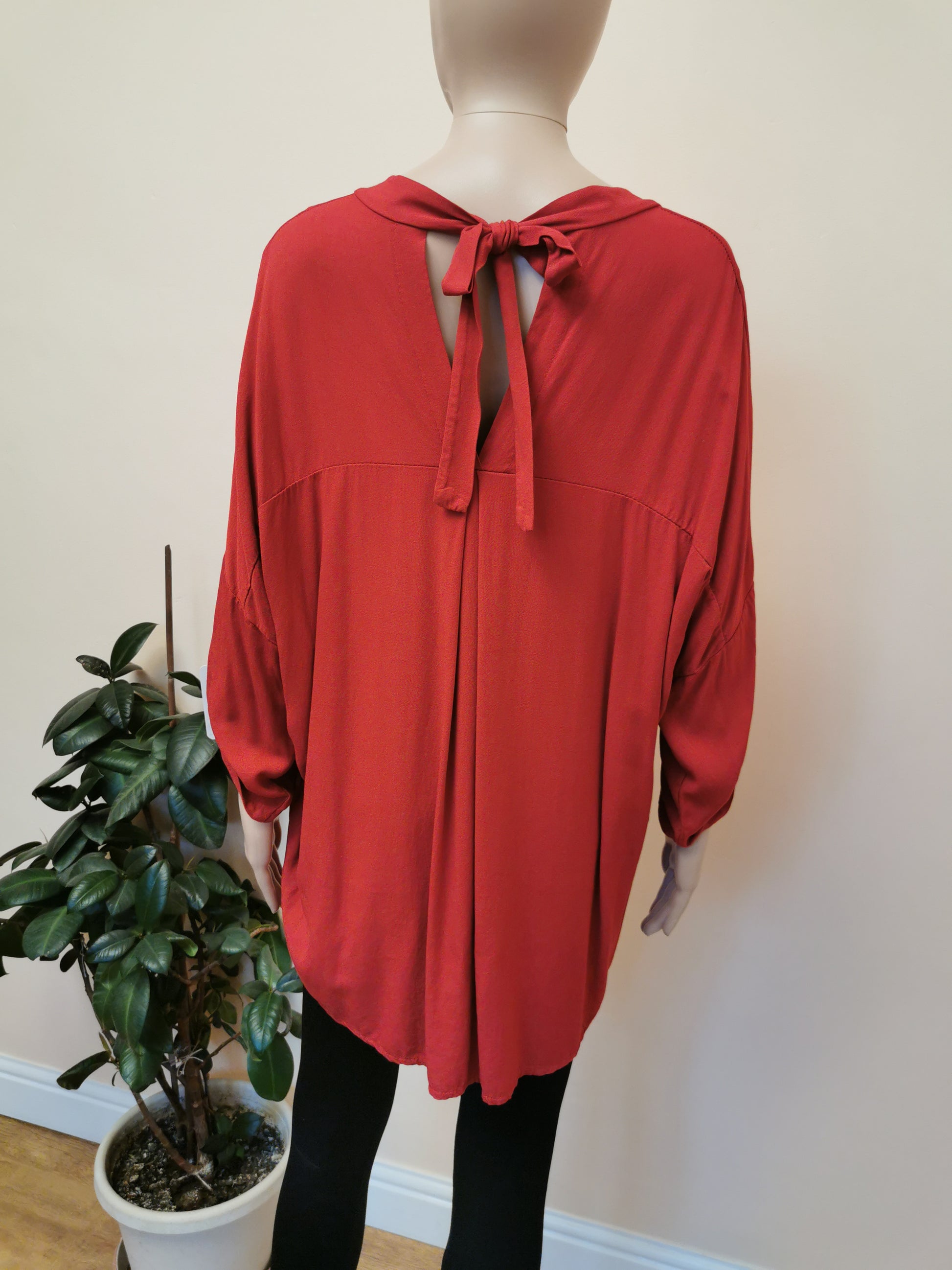 This V Neck V Back Tie Red Top is perfect for any occasion. The stylish V neckline and adjustable tie provide a flattering fit and modern silhouette. Whether you're dressing up for work or a night out, this timeless top will look and feel great.